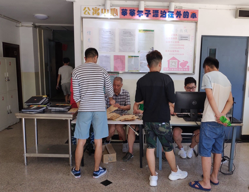毕业生离校的重头戏在公寓。进入毕业季以来,学生公寓中心加强了夜班值班工作,及时处理各种情况,将四年的关爱之情浓缩这短短的几天时间里。“一站式”退宿让学生少跑路,只要交回钥匙注销“一卡通”即可拎包离校。